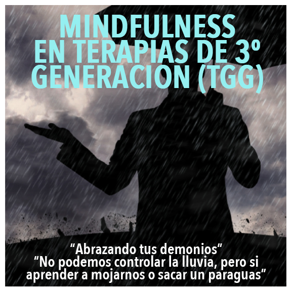 El paraguas “Terapias de tercera de generación (TTG)” da cobijo a una serie de terapias heterogéneas, que tienen algunas características comunes. Una de ellas es Mindfulness. Las TTG tienen como principio terapéutico el abandono de la “lucha contra los síntomas”. No se trata de eliminar los síntomas sino de tomar conciencia y modificar la experiencia